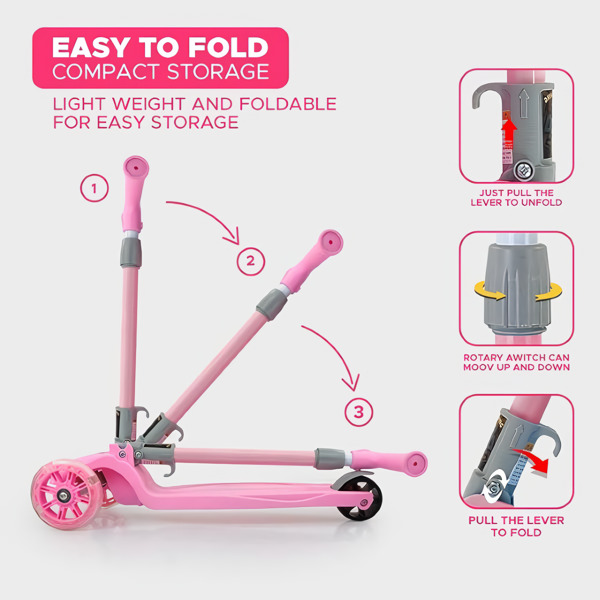 Onog trenutka kada djeca vide te kotače kako svijetle, romobil postaje njihova omiljena stvar. LED kotači automatski bljeskaju pri svakom odgurivanju – baterije nisu potrebne, u potpunosti se napajaju okretanjem. Više vremena za vožnju, nula odlazaka u trgovinu po baterije.