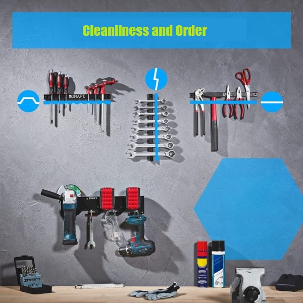 Sa svojih 60 cm duljine, ovaj držač može istovremeno smjestiti razne alate, maksimizirajući učinkovitost skladištenja.