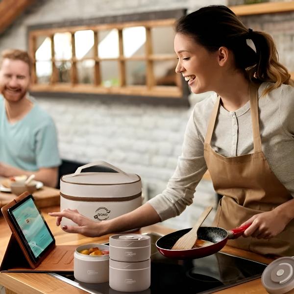🥡 Ovaj višeslojni set posuda za hranu održava vaše omiljene namirnice toplima do 4 sata.